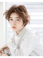 お洒落なオトナ女子にオススメスタイルです!長め前髪の前下がりショートの大きめ緩めのウエーブを合わせることで今っぽい抜け感も演出!カラーはハイライトにベージュアッシュ!洋な気分を盛り上げて!