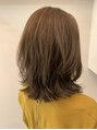 肩につくくらいのボブに表面に動きがでるようにレイヤーをいれて軽さのあるスタイルに。カラーはハイライトとアディクシーカラーで透明感のあるグレージュカラーに