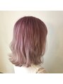 ボブスタイル。ピンク系のカラーで可愛らしい印象に。 柔らかめのワックスやトリートメントをつけて束感や無造作感を。