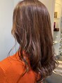 毛先は厚みをだして、表面と顔まわりにレイヤーをいれることでふんわり巻きやすいようにカットしてます。カラーはオレンジベージュで艶感のある色味に