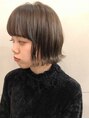 透明感のあるアッシュベージュ!落ち着きのある色ですが透け感があるので重たく見えないのでとても人気です☆ぱつっとワイドバングに外ハネスタイリングで少しだけ個性派おしゃれヘアに♪
