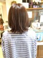 表面にレイヤーを入れて軽さもあるボブスタイル。毛先は厚みがあるので、少し伸びても扱いやすいです◎ カラーはブラウンベージュで艶感を