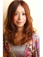 耳下からでるカールで柔らかいイメージを出し、カラーはオレンジベージュにハイライトを入れることで立体感を演出♪