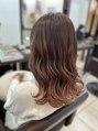 大きめなカールで抜け感を出しつつ、無造作な中にも大人綺麗なイメージに仕上げました。伸ばしかけの重めボブでも似合うナチュラルパーマスタイルです!カラーは、ドーリーローズで艶のある印象に。
