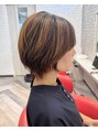 バーミリオン(朱色!に、ブラウンを混ぜて柔らかなヘアカラーに仕上げさせて頂きました。色落ちも、黄色っぽくなるのが嫌な方はオススメです。ショートヘアに彩りを。
