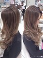 リゾート感を感じさせるリラックステイストスタイル☆無造作に毛先が動くように全体的にハイライトをランダムにいれましたそして毛先のハイトーン感をより引き立てるためにナチュラルなグラデーションカラーへ☆モノトーンアッシュで透明感とラフ感を演出♪