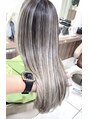 軽さと動きのあるトレンドのレイヤーカットのデザインに映えるコントラストのあるハイライトバレイヤージュは海外風のデザイン。ブリーチ負担を髪質改善ケアでの抑える事で色も髪も両方綺麗になれます!