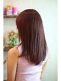 ピンクとパープルを混ぜた艶カラーで褪色してきても黄色くならずにキレイをキープ☆ウェット感の出るジェリーを揉み込んでスタイリングすると更に今っぽくなります!
