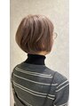 髪全体を明るくすることで、白髪をカバーしたショートボブ。ベージュ系やグレージュ系の色味は、髪をやわらかく品良く見せてくれます。顔周りもパッと明るくなるためオススメです!