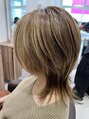 しっかりとくびれを作った、ウルフカットです。襟足に重さが溜まらないように、骨格を見ながらカットさせて頂きました。ハイライトカラーを合わせてより軽さと動きを表現しました。
