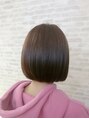 あごラインのやや前下がりなボブ。ベーシックなスタイルですが首を見せることで小顔見えにも!イルミナカラーのピンクバイオレット系で大人っぽくも可愛らしい印象に♪ツヤツヤサラサラ!セットしやすく扱いやすい髪型です◎