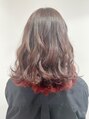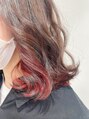 ベースに自然なウォームベージュ、インナー部分にしっかりレッドを入れることで一味違った印象に☆赤味系は回を重ねれば重ねるほどカラーを保ちやすくなります♪ストレートでもカールでも可愛いスタイルです!!