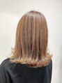 横にくる長さと後ろにくる長さをあえて同じラインにした、シンプルなスタイル♪実はこれが、外ハネを作るのにセットしやすいスタイルなんです♪ハイトーンカラーとのバランスもよく、耳にかけてピアスやイヤリングをチラ見せしても◎!!