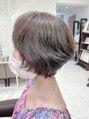 お客様の、もともとのくせを活かしたショートスタイル。バックトップは短くしすぎずに、ほどよく重みを残しつつ、毛先にやや軽やかさを足してバランスをとっています。手ぐしでセットできて、お手入れも簡単◎横から見たときにもまるみを感じるシルエットに!