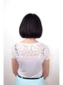 モデルさんの顔立ち・髪質などをいかしてシンプルなボブにしました。バングは目にかかるくらいでラインを少し出して、目力が出るようにしました。