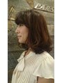 外ハネカールと前髪とトップにボリュームを出したロブベースに根元→ボリュームを抑えたい所はストレートでクセ伸ばし、根元のボリュームを出したい所は部分的にパーマカラーは暗めのブラウンのローライトを全体に入れてメリハリと 動きと奥行きを表現♪