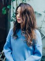 大胆な動きがあるスタイルになっています! カラーリングはパーマの動きに合わせて色が出るように、きちんとしたグラデーションカラーではなくランダムに明るいところを作ってあるヘアカラーになります! 大きいウェーブとかきあげバングでクールな印象に☆