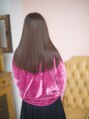 さらっとしたストレートロング。Iラインにすとんと落ちるストレートはトップから毛先にかけての毛量調整でコントロール☆透明感とツヤ感が出やすいように9レベルのヌーディーベージュでカラーリング。細かく全体にいれたハイライトで抜け感を演出☆