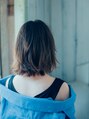 無造作な毛先の動きと、少し立ち上げながら流したバングがクールでおしゃれなロブ(長めのボブ)。 バングは根元からしっかり立ち上げるのではなく、下層は自然に流して上層からトップにかけてふんわり立ち上げるのがポイント!