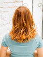 鎖骨下の長さで前上がりのAラインシルエットになるようにカットし、トップにレイヤー入れてふんわり可愛いくしました!カラーは明るめのオレンジベージュで明るく陽気な雰囲気にしました。パーマで目の高さからかけエアリーミディに!
