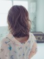 ベースはややグラデーションの入ったミディアムに、ピンクベージュのカラーで柔らかく可愛さを演出☆ ウェーブ状にコテで目の高さから巻いてあげることでフワッとした質感を作れます。前髪も忘れずに内巻きに立体感を出してあげるとgood!