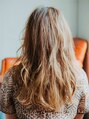 胸上くらいの長さでカットしてトップにレイヤーの入ったスタイル!カラーはブリーチとハイライトを入れて、グラデーションにベージュカラーで染めて透明感をだしました!バングは眉下で斜めに切って流れやすく!なしでも似合います!