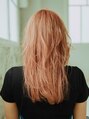 伸ばしかけの、ナチュラルレイヤーミディースタイルです。 バングをかき上げ風にすると、大人っぽい印象に。 カラーリングは全体をブリーチして透け感のあるピンクベージュ系に。 大人かわいい感じに仕上がります!!