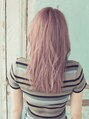 今注目のピンクグレージュカラーです!ブリーチをして明るめのピンクというと派手で少し挑戦しにくいといったイメージがありますが、少しくすませたピンクに仕上げることで、派手さの中にも柔らかさを出しています!