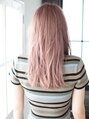 今注目のピンクグレージュカラーです!ブリーチをして明るめのピンクというと派手で少し挑戦しにくいといったイメージがありますが、少しくすませたピンクに仕上げることで、派手さの中にも柔らかさを出しています!