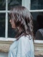 前髪と毛先に動きのあるミディアムロングスタイル☆前上がりのスタイルで顔まわりが短くなるので毛先の動きがつきやすく小顔印象も!ゆるっとパーマをかけておけば朝のスタイリングはオイルで簡単に!!束間を出したい方はバームでもOK!