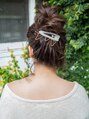 しっかりカールを作ったら、お団子をつくります。おくれ毛を少しずつ出して、潰れやすいトップをつまみながらだすろふんわり感が出ます。スタイリング剤をつけからやるとやりやすいです。ちょっとしたおでかけのアレンジにオススメです。