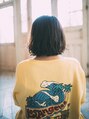 暗めカラーのパッツンボブです。アクセントでイヤリングカラーをしています。耳にかけた時にポイントになるようブリーチをして色を抜いてからオレンジベージュ系カラーを入れています。あまり派手にヘアカラーが出来ない方におすすめ。