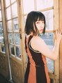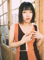 前髪は眉ラインで長さはあご下のパッツンボブです。コンパクトなシルエットになるようカットしています。風になびいた時や耳にかけた時にアクセントになるようイヤリングカラーをしています。幅や色はデザインによって。