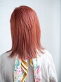 方にあたる長さの切りっぱなしワンレングススタイルです。 カラーは濃いめの暖色カラーでしっかりと発色させています。 ノーバングでストレートタッチのスタイルではクールな印象になりやすいのでカラーリングでバランスをとるのがおすすめ!