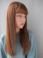 ナチュラルなストレートスタイル!毛先が重めのカットをロングスタイルですることで、よりストレートな印象が際立ちます。バングも重く設定すると全体的にボテっとしてしまうので量感を整えます。カラーは明るく設定することで顔周りを明るくしてくれます。