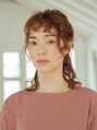 ゆるくふんわりとアレンジした、愛されミディアムスタイル。ハーフアップで全体をくるんとさせることで柔らかさと可愛らしい印象がでます。明るいブラウンカラーもより一層ふんわりとした雰囲気を出すことができます。