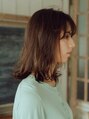 毛先に少しレイヤーを入れたぱっつん寄りなミディアムスタイルです。 巻くのが苦手な方でも自然と外はねする長さでもあります。 バングは巻いて目にかかる長さなのでシースルーバングが映えてとっても可愛いくなります!!