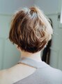 ゆるくパーマのかっかったすっきりショートボブスタイル☆後ろのスタイルがひし形ですっきりコンパクトに収めるのがポイント!前髪で顔まわりの輪郭をかくしてすっきり!片方耳にかける感じも大人っぽくなりgood!!