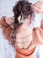 ルーズな編み下ろしスタイルで普段使いやウエディングパーティーなどにも合わせられるアレンジスタイルです☆ お花やバレッタなどヘアアクセと合わせてもかわいいスタイルです☆ 顔まわりは少し強めに巻いてルーズ感をだすとgood★