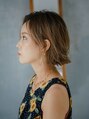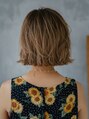 プツンッとした切りっぱなしのラインに表面に少しレイヤーを入れることで動きのあるボブに。根本はあえて黒く残すことで全体に馴染みやすく毛先にかけて明るさをだし重すぎないヘアースタイルに。前髪があっても可愛いこと間違いなし。