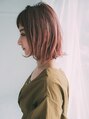 無造作なミディアムワンレンのスタイルです。バングありの髪型でハイトーンのピンク系のスタイルなのでキュートなイメージを入れつつ甘すぎないように外ハネに。バングは少し大きめの隙間を作り肌の露出を多くすると今っぽいです!