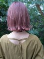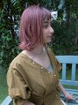 無造作なミディアムワンレンのスタイルです。バングありの髪型でハイトーンのピンク系のスタイルなのでキュートなイメージを入れつつ甘すぎないように外ハネに。バングは少し大きめの隙間を作り肌の露出を多くすると今っぽいです!