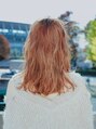 扱いやすいミディアムレイヤー。顔まわりに入れたレイヤーが小顔印象のポイント!シースルーバングで抜け感のあるスタイルに。全体にゆるく無造作なウェーブで動きをつけました。カラーは透明感とツヤ感を重視してヌーディーピンクに☆