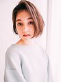 前髪なしの前上がりボブです。レイヤーが入っているので重すぎないシルエットになっています。丸顔の方や髪のボリュームが多い方にもおすすめです!!カラーはアッシュブラウンで透明感のあるカラーになっています。