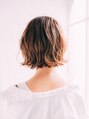 顎ラインの切りっぱなしボブスタイルで、首が出てすっきりとしたスタイルに。表面にレイヤーを入れて重すぎない動きのある柔らかい印象になり、大人ボブスタイルに。カラーはナチュラルなブラウンにすることで柔らかい印象になります。