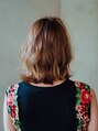 無造作なミディアムレングスのウェーブです。バングありの髪型でカラーリングは少し明るめのベージュなので少し柔らかいイメージに仕上げています。全体をミックスにコテで巻くかパーマをかけてあげると普段のセットが楽になります。