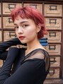 ハイトーン染めることで明るく仕上げたコンパクトなショートボブ。 頭を小さく見せてくれるのでスタイルアップと小顔印象があります!! バングを短くすることで顔周りを明るい印象に トップにレイヤーを入れて動きを出しやすくしています!