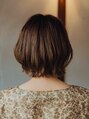 人気のレディースショートスタイル。前から見た時はボブベースですがバックはタイトにめりはりをつけました。カラーは女性らしく透明感のあるベージュ系で明るめにしてます。バングは薄く作りおでこの出方に拘りました。