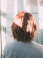 今回のスタイルは、大人気スタイルのハイトーンに合わせた動きのある切りっぱなしレイヤーになります。 今期トレンドのオレンジ色にしました。 カラーは根元から毛先にかけてグラデーションを作り、自然体な印象を作りました。