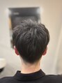 分け目でメリハリをつけたスパイキーショート。束感が出しやすく、短髪でも大人っぽい印象に。セットも簡単で、オンオフどちらにも合わせやすいスタイルです。